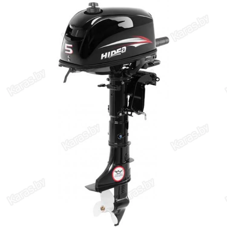 Подвесной лодочный мотор Hidea HD5FHS рассчитан под стандартную высоту транца 381 мм и имеет общий вес 21 кг.