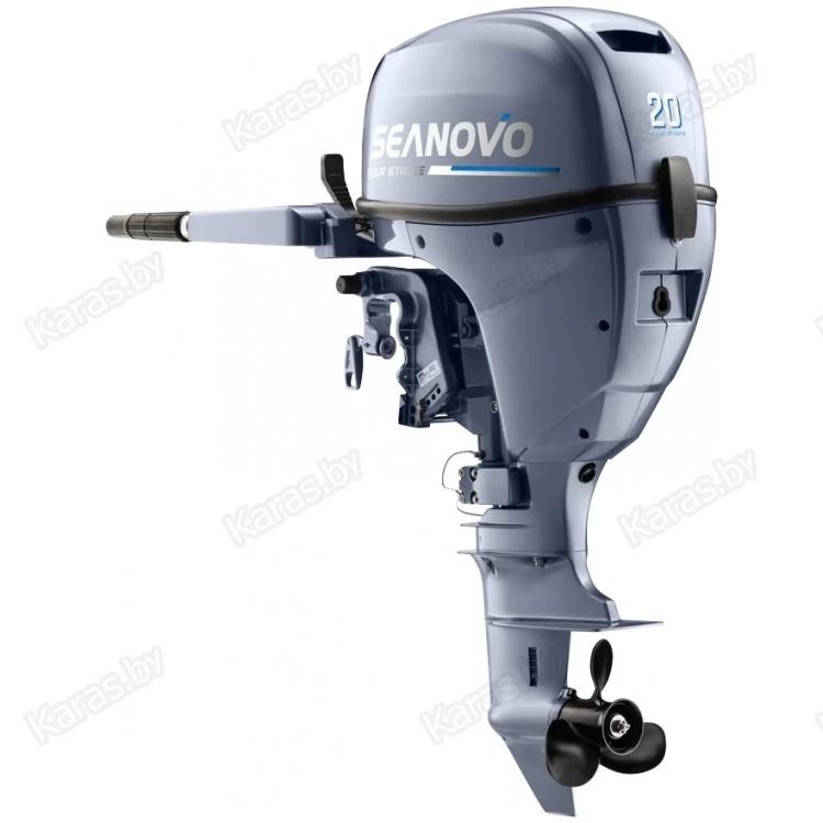 Seanovo SNF 20 HS - это четырехтактный подвесной лодочный мотор мощностью 20 л.с., отлично подходит для водных прогулок и рыбалки на корпусных или надувных ПВХ лодках.