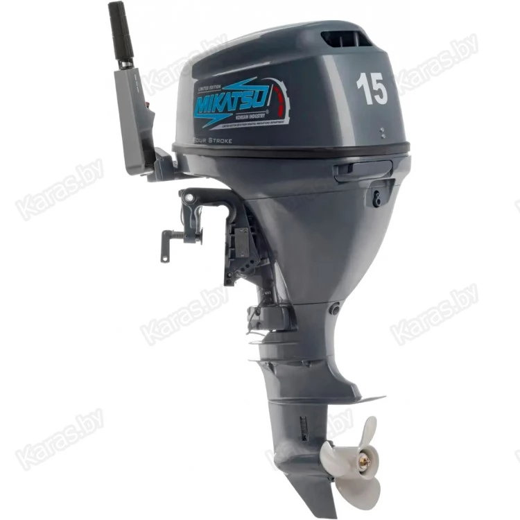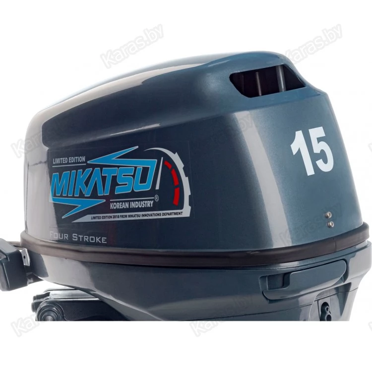 Подвесной лодочный мотор Mikatsu (Микатсу) MF15FHS — отличный выбор для тех, кто хочет получить высокую мощность, но не желает переплачивать за высокий расход топлива. Он является полноценной аналогией японского двигателя Yamaha (Ямаха). Его 4-х тактный двухцилиндровый двигатель имеет мощность 15 л. с. При этом потребление топлива составляет всего 5,3 л на час работы. Достигается это благодаря использованию инновационной системы подачи топлива Mikatsu (Микатсу) и японских свечей зажигания NGK. Вес двигателя составляет 49 кг, он оборудован 3 передачами – передней, нейтральной и задней. Пятислойное лакокрасочное покрытие не только придает стильный внешний вид, но и надежно защищает мотор не только в пресной, но и в морской воде.
