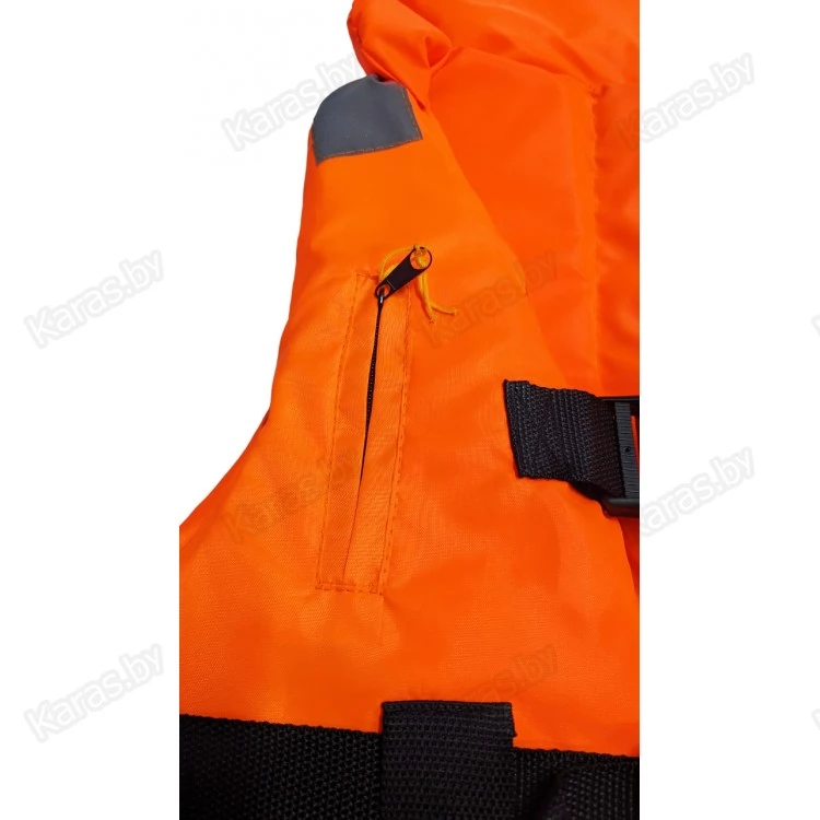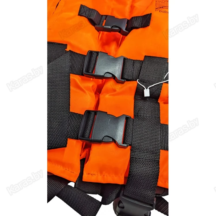 Фиксация жилета и регулировка объема осуществляется с помощью ремней на фастексах. Снизу расположен паховый ремень с регулировкой и фиксацией длины. Жилет с высоким подголовником, который хорошо держит голову человека на плаву и обладает достаточной гибкостью для складывания при транспортировке. Сверху на уровне груди и сзади на подголовнике размещены светоотражающие ленты. Справа на груди расположен карман на молнии, в котором размещается свисток на шнурке.