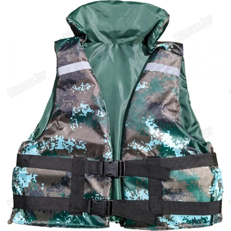 Страховочный жилет для взрослых. Конструкция жилета позволяет поддерживать человека на поверхности воды. Подходит как для туристических водных прогулок, так и для рыбалки или спортивных тренировок. Изготавливается из современных синтетических тканей с влагозащитным покрытием. С фотоотражающими элементами. Распашной жилет на фастексах. Имеются регулировочные ремни на груди и талии.