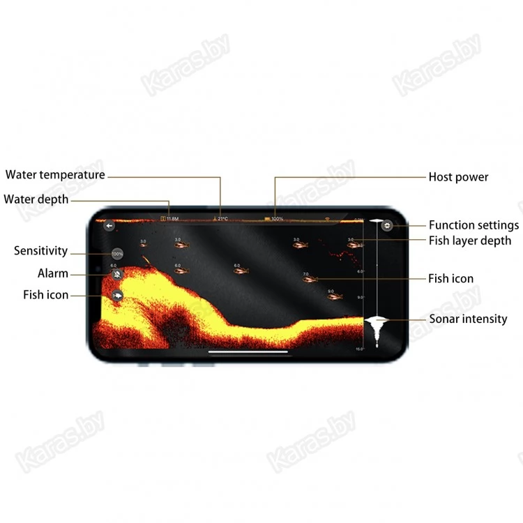 Для запуска эхолота достаточно установить приложение под названием "Luckysmartsonar" на ваше мобильное устройство и включить WiFi.