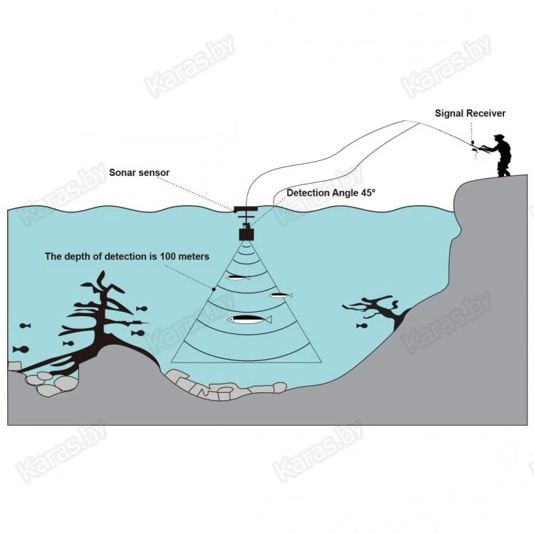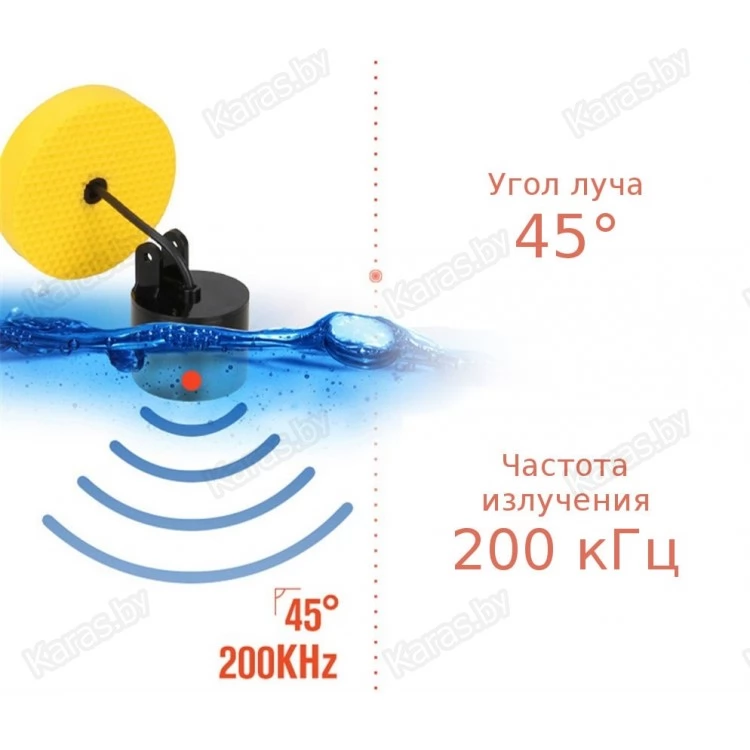 Проводной трансдьюсер оснащен излучателем, работающим на частоте 200 кГц с углом развертки луча 45°. Максимально доступная глубина для эхолокации 100 метров. На соединительном кабеле длиной 8 метров находится круглый поплавок для удобства ведения подледной рыбалки. Трансдьюсер может быть смонтирован непосредственно на транец или на выносную штангу.