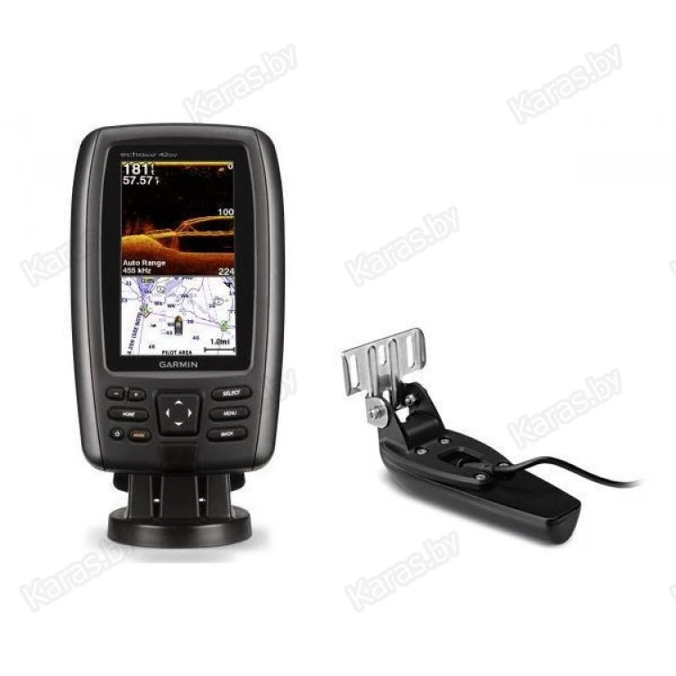 В комплекте трансдьюсер Garmin GT20 с CHIRP (77/200 кГц); мощность передачи (300 Вт RMS)/(2,400 Втмаксимум) с 455/800 кГц CHIRP DownVü (мощность 300 Вт)