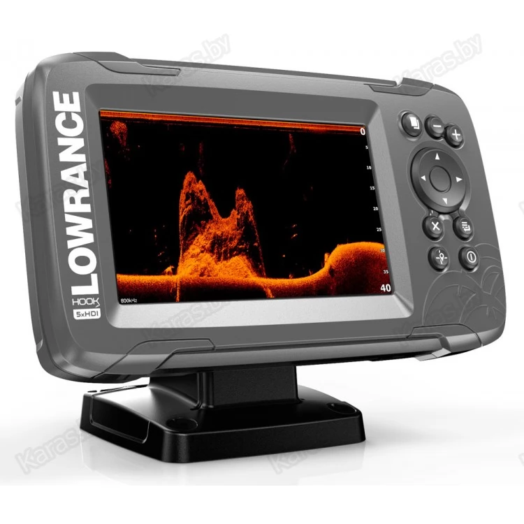 Lowrance HOOK2-5x с датчиком SplitShot (200 кГц — 455/800 кГц) с диагональю экрана 5 дюйма. Яркий цветной дисплей SolarMax. В комплекте датчик 200-455/800 кГц. Встроенный GPS навигатор.