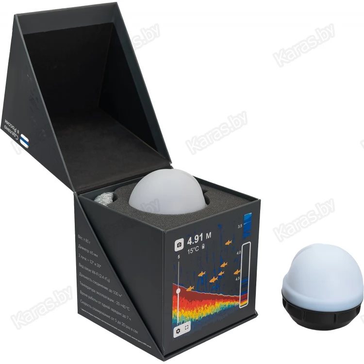 Эхолот соединяется со смартфоном по Wi-Fi и позволяет уверенно держать связь на расстоянии до 100 м. При этом качество связи не зависит от погодных условий.