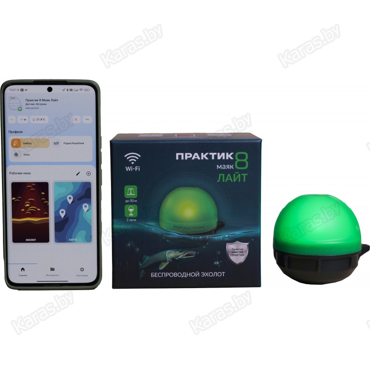 Беспроводной эхолот "Практик 8 Маяк Лайт" - настоящий эхолот по доступной цене. Эхолот работает совместно с мобильным приложением "Мой Практик", которое доступно в AppStore, Google Play и RuStore. Соединение эхолота с приложением происходит очень быстро и просто.