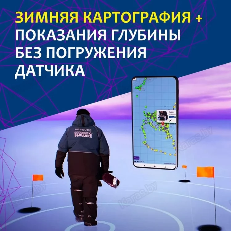 Отдельно стоит упомянуть зимнюю картографию. Эхолот позволяет создавать карты глубин и в зимний период. Но, главное, при наличии карт, вам не придется тратить время и силы на бурение лунок для того, чтобы опустить датчик в воду и определить глубину. Вы сможете увидеть глубину, просто включив эхолот и подключив мобильное приложение с картой глубин водоема.
