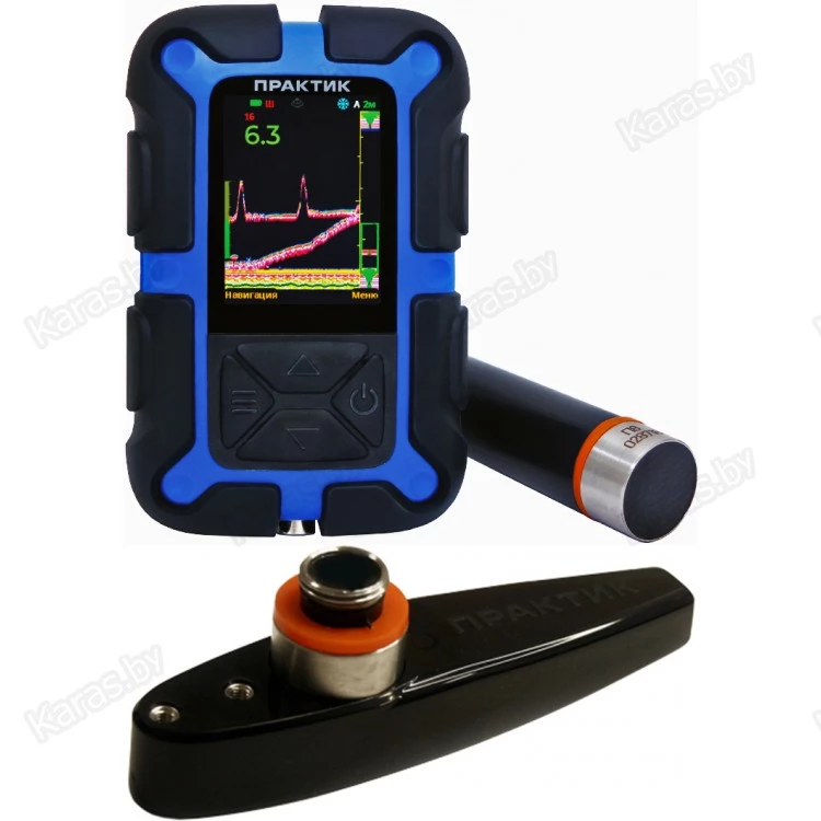 Практик 8 Pro Wi-Fi оснащен двухлучевым многочастотным датчиком, с углами 12° и 35° и диапазоном рабочих частот от 300 КГц до 500 КГц, способным работать на глубинах до 70 метров. Помимо классического проводного датчика, эхолот также может работать со структурным датчиком эховизор, который вы можете приобрести дополнительно.