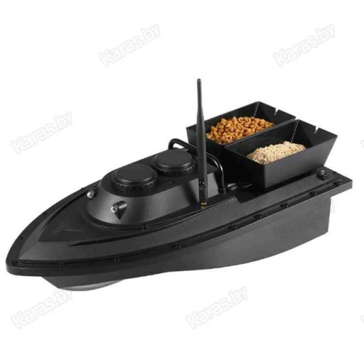 - Вмещает до 1 кг прикормки. Кораблик оснащен 2 специальными лотками для сброса прикормки. Емкость каждого лотка позволяет вместить 500 грамм прикормки для карпа.