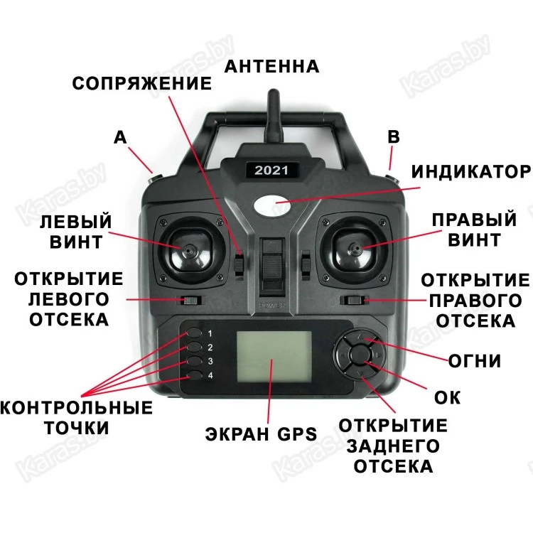 GPS навигация кораблика крайне проста. Для начала, после прибытия на водоем, необходимо откалибровать встроенный компас, затем задать стартовую точку и до 4-х точек прикорма. После выполнения этих действий достаточно лишь нажать одну из 4 точек на пульте, и кораблик автоматически поплывет к ней. Погрешность GPS составляет до 5 метров. GPS имеет полезную функцию - автоматический возврат к стартовой точке в случае потери сигнала пульта.