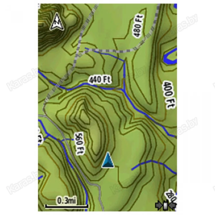 Благодаря слоту для карт памяти microSD прибор Astro 320 позволяет покупать и загружать различную топографию для возможности прокладки маршрутов по дорогам от поворота к повороту. Устройство Astro 320 также поддерживает спутниковые изображения BirdsEye Satellite Imagery (требуется подписка), которые вы можете загружать в прибор и интегрировать с картами. На картах изображены основные географические объекты, чтобы охотники могли знать, например, что собака пересекла ручей или находится рядом с опасной дорогой.