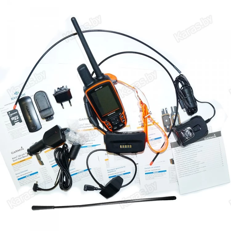 Прибор продается в пластиковом кейсе с одним ошейником T5* и аксессуарами. При необходимости приобрести дополнительные ошейники T5*. При помощи Astro 320 можно отслеживать одновременно до 10 собак.