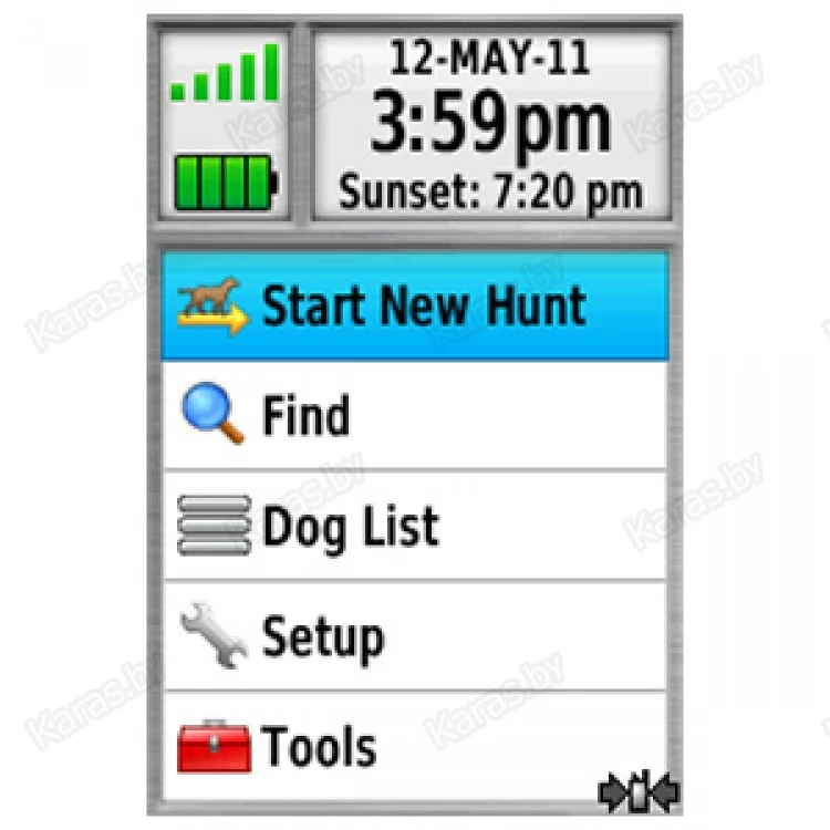 В модели 320 используются более крупные пиктограммы и шрифт, чтобы вы быстрее могли найти нужную информацию. Кроме того, устройство автоматически отображает координаты собак, не входящих в текущие границы экрана, в боковых полях данных.