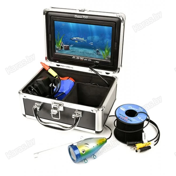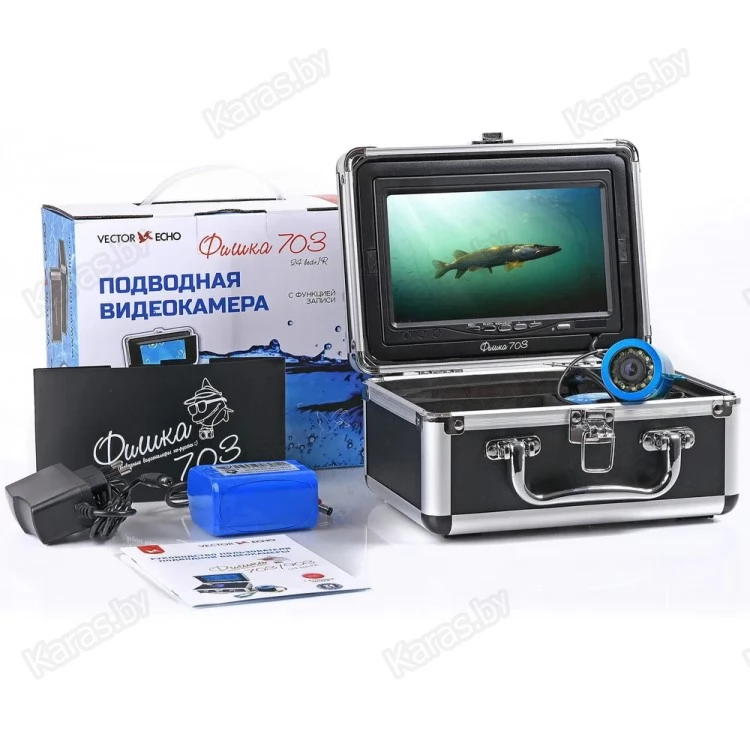 Подводная видеокамера Фишка 703 с функцией записи — это полноценная видеосистема, которая позволяет вести съемку и получать качественное изображение в любых условиях. Прибор поставляется вместе с алюминиевым кейсом, в который помещаются все аксессуары к камере. Кейс обеспечивает дополнительную защиту, а также облегчает хранение и переноску прибора.
