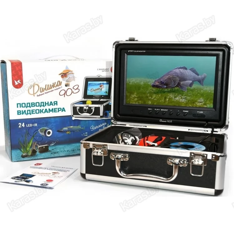 Подводная камера для зимней рыбалки Фишка 903 заинтересует многих рыболовов. Она оснащена самым большим для подводных камер цветным дисплеем диагональю 9" (23 см) с разрешением 800 х 480 пикселей. Эта подводная видеокамера применяется не только на зимней, но и на летней рыбалке для детального исследования подводного мира и наличия рыбы. Но все же для зимней рыбалки она является незаменимым устройством, с помощью которого можно просмотреть наличие рыбы в предполагаемом месте лова, а также увидеть ее поклевку.