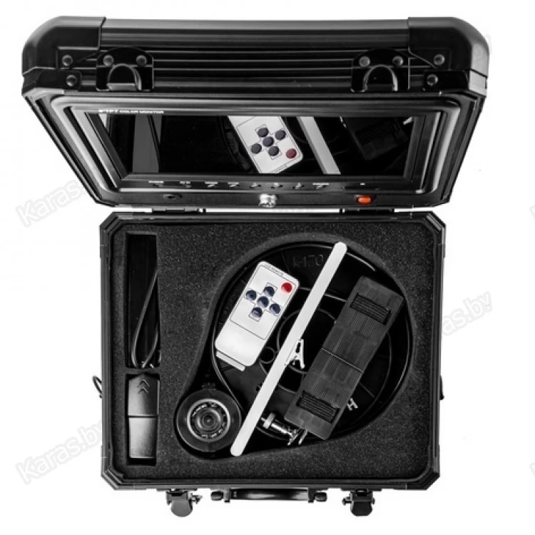 - Что бы начать работу с камерой, нужно открыть кейс и вставить 2 разъёма (питание и видео).