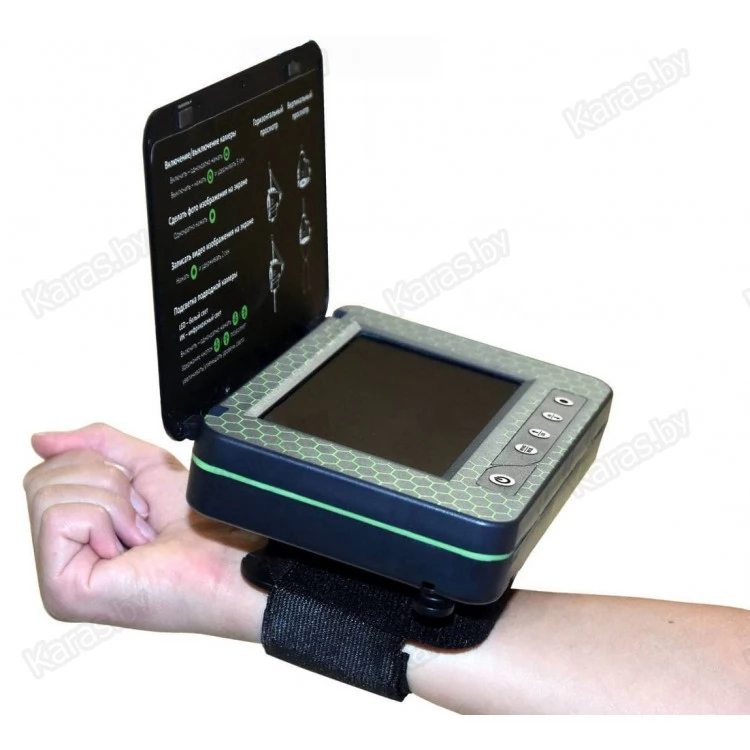 - В базовой комплектации оснащена всем необходимым для скорейшего начала использования: камера, переносной монитор, сумка-чехол, SD-карта на 8 Гб с адаптером, фиксатор монитора на удочку, фиксатор монитора на руку.