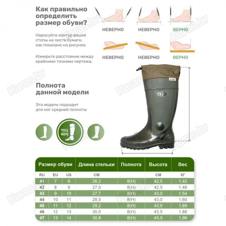 Размерный ряд резиновых сапог рассчитан на подростков и мужчин любого возраста.