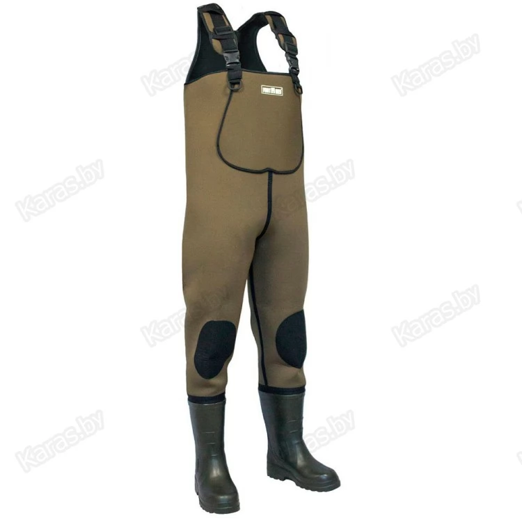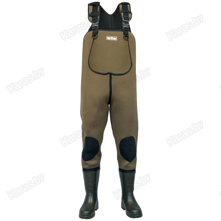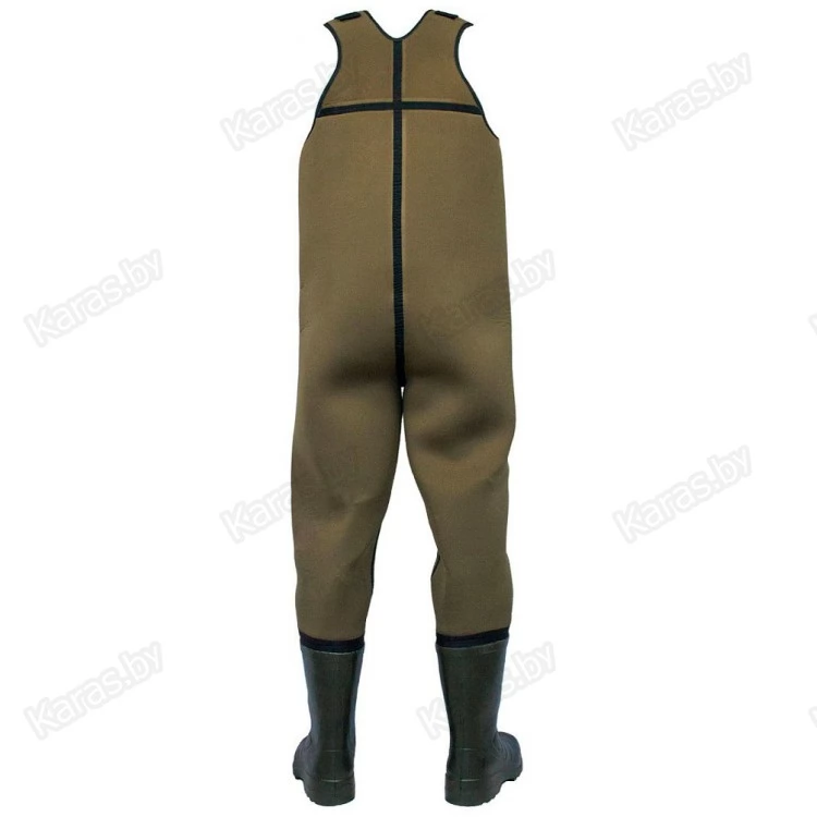 Нижняя часть полукомбинезона - легкие и теплые сапоги из ЭВА, которые при необходимости могут комплектоваться вставным утеплителем, что позволяет эксплуатировать полукомбинезон этой модели при более низких температурах.Из-за хороших теплоемких свойств ЭВА и неопрена эта модель полукомбинезона рыбацкого отлично подходит для рыбалки в холодной воде.