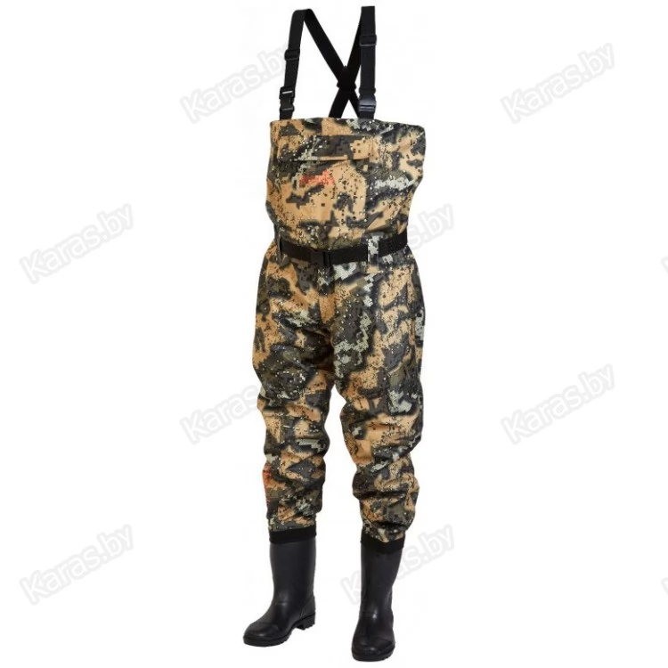 Верхняя часть забродного полукомбинезона сделана из высококачественного трехслойного "дышащего" материала. Сапоги изготовлены из легкого и прочного ПВХ.