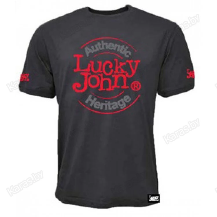 Хлопковая футболка с короткими рукавами. Цвет Серый, на передней части модели, на рукавах и спинке принты Lucky John.