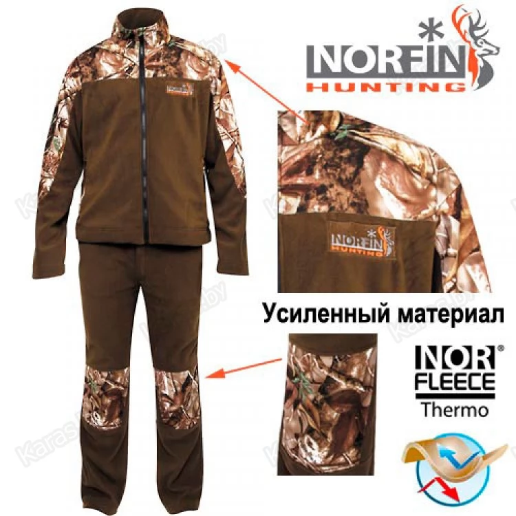 Материал прекрасно регулирует температуру тела, предотвращая замерзание в мороз и перегрев при избыточной физической активности. Ткань не теряет свой внешний вид даже после многократных стирок, а области плеч и локтей имеют особое укрепление. Заказать костюм Norfin Hunting FOREST нужного размера по невысокой цене вам поможет магазин товаров для активного отдыха karas.by. ©