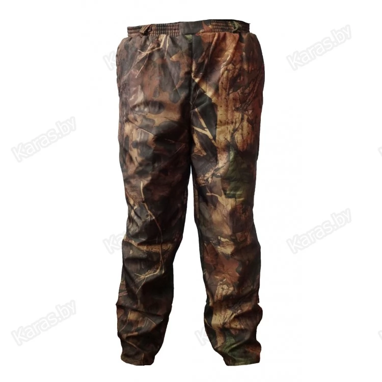 Брюки оснащены верхними сквозными карманами. Имеют поясную резинку, а так же петли для продевания ремня. Прямой крой калош.