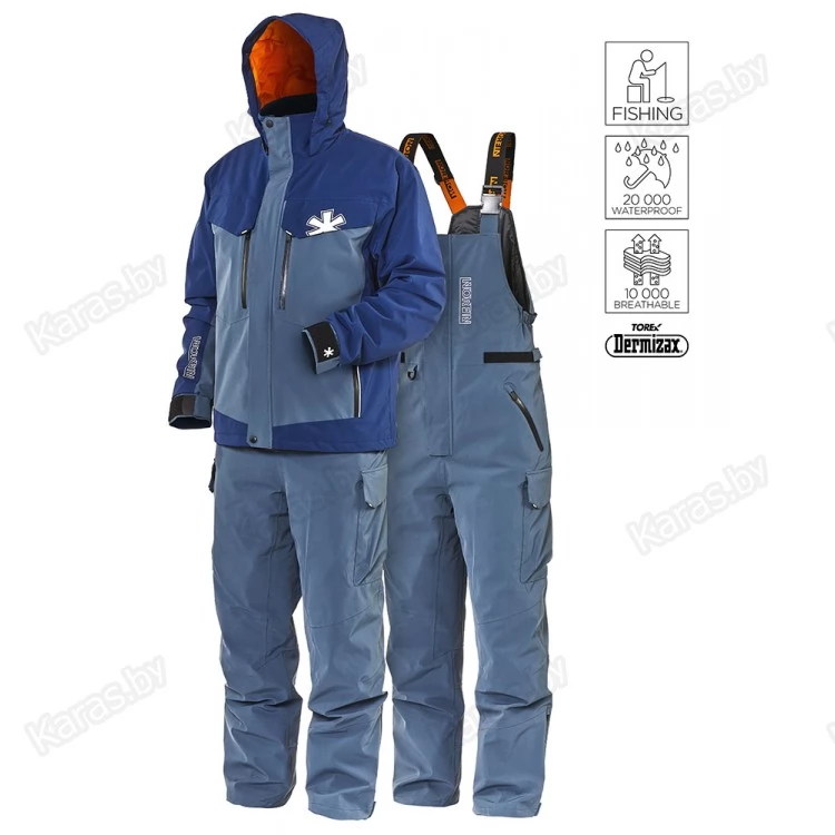 Костюм изготовлен из двухслойного мембранного материала Dermizax японской компании Toray. Современный легкий утеплитель 3M Thinsulate обеспечит комфортное состояние при температуре до 0ᵒС.