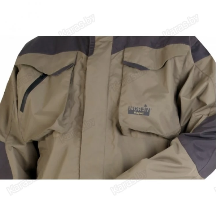 Костюм отличается наличием двух накладных карманов на груди, предназначенных для размещения коробок с приманкой. Карманы для согрева рук имеют мягкую подкладку из флиса, приятную наощупь. Объем капюшона регулируется на двух уровнях. Проблемные места любой одежды для активного отдыха – локти и колени - усилены дополнительными накладками, что увеличивает срок службы полукомбинезона и куртки. Цена на костюм Norfin RAPID вполне соответствует его качеству, в чем вы можете убедиться, посетив интернет-магазин рыболовных товаров karas.by. ©