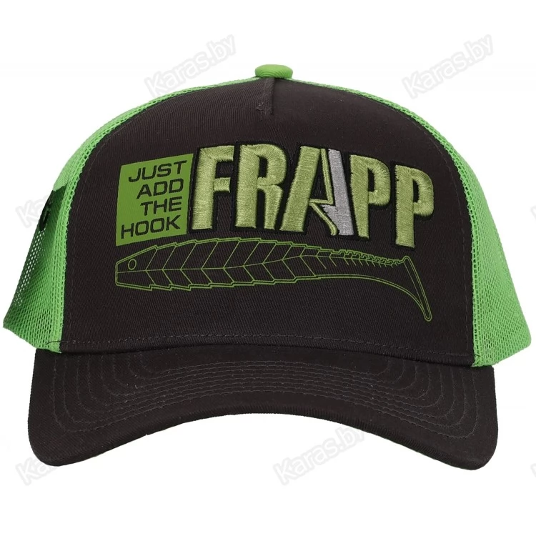 Кепка Frapp - удобный и стильный аксессуар в лаконичном дизайне. Доступны в двух вариантах расцветок - "черная кепка - черная сетка" и "черная кепка - зеленая сетка". Внутренняя поверхность козырька на каждом варианте расцветки - зеленого цвета.