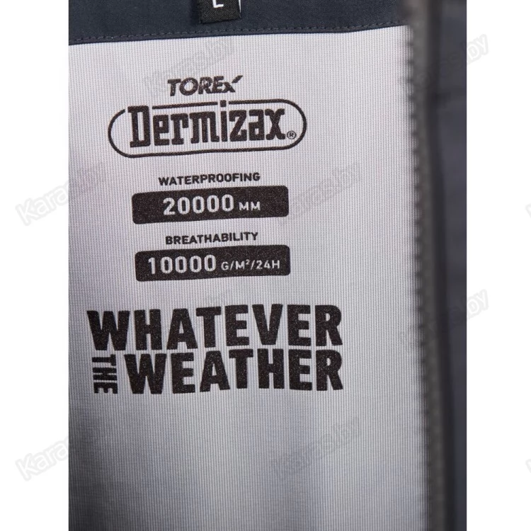 - TORAY Dermizax 3-х слойный мембранный материал Dermizax® - мембранная ткань японского производителя Toray представляет последнее поколение беспоровых мембран. Имеет кристаллическую структуру, высочайшие показатели паропроницаемости и водостойкости, обладает способностью растягиваться и быстро восстанавливать длину. Фурнитура, молнии YKK.