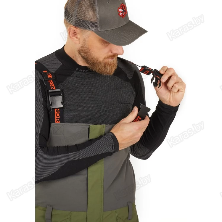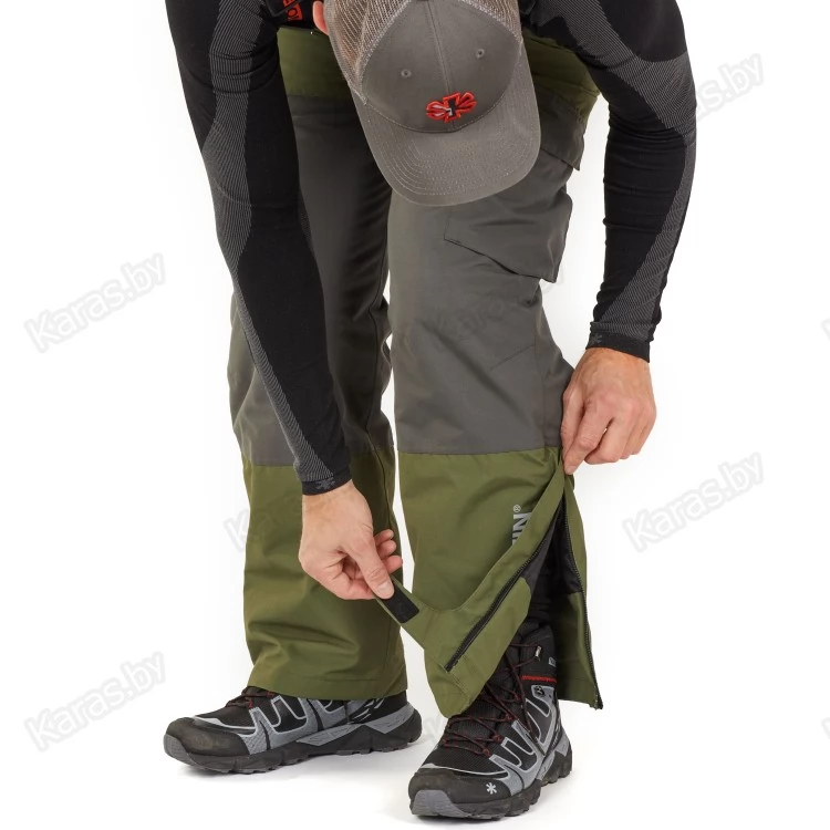 - Снизу штанин: расширительный клапан на молнии и регулировка объема штанины «липучкой»