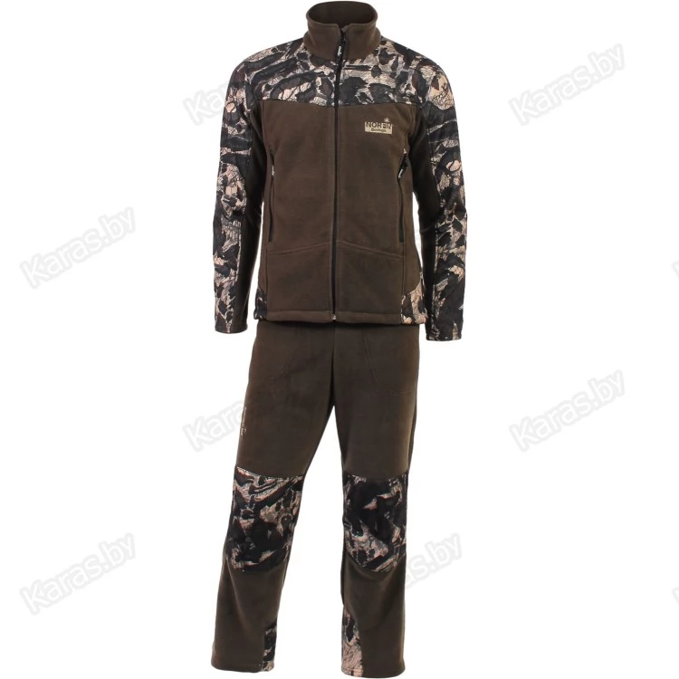 Костюм флисовый с накладками из материала Alova Premium на мембране (3000/3000), обеспечивающей комфортное состояние под одеждой. Вместительные карманы на куртке. Все замки-молнии с пуллерами для удобства. В нижней части куртки и брюк расположены утяжки, для регулировки объема и защиты от проникновения холода под одежду.