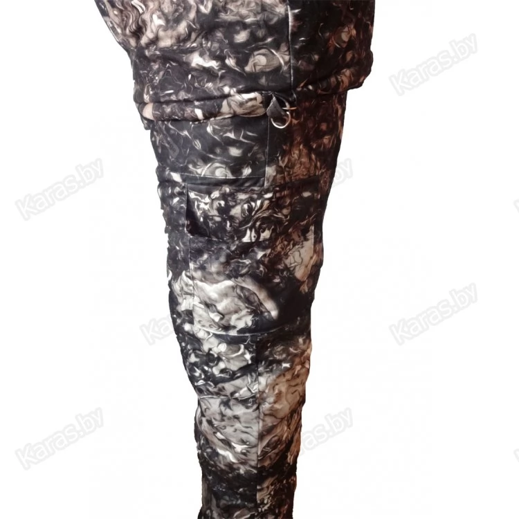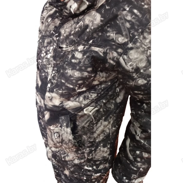 Костюм изготовлен из мембранной ткани Алова. Подкладка Флис. Утеплитель Вайт-Файбер плотностью 300г/м. кв и флис. Благодаря дышащим свойствам флиса, костюм быстро сохнет отводя влагу от тела так же, как и термобелье. Фурнитура производства Польша. Алова - синтетическая ткань, состоящая из трикотажного полиэстерового материала с нанесенным водоотталкивающим покрытием (мембраной) с изнаночной стороны. Современное мембранное покрытие обеспечивает ткани водонепроницаемость и хорошую паропроницаемость. Быстрый отвод испарений с поверхности тела на наружную сторону ткани и защита от проникновения воды (осадков) внутрь одежды - обеспечат комфорт в любую погоду. Ткань алова бархатистая, мягкая на ощупь, имеет хорошие теплоизоляционные свойства, не накапливает влагу, не пропускает влагу снаружи, не продувается, не шуршит и не замерзает на морозе. Этот материал был специально разработан для производства одежды и снаряжения для активного отдыха (альпинизм, горный туризм, рыбалка, охота, экстремальные виды спорта и прочее). Изделия из ткани Алова рекомендуется стирать в теплой воде (t до 30°С) с использованием специальных средств. Гладить теплым утюгом (t до 110°С) только со стороны подкладки. Ткань при стирке не деформируется и не даёт усадки.
