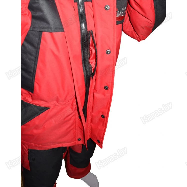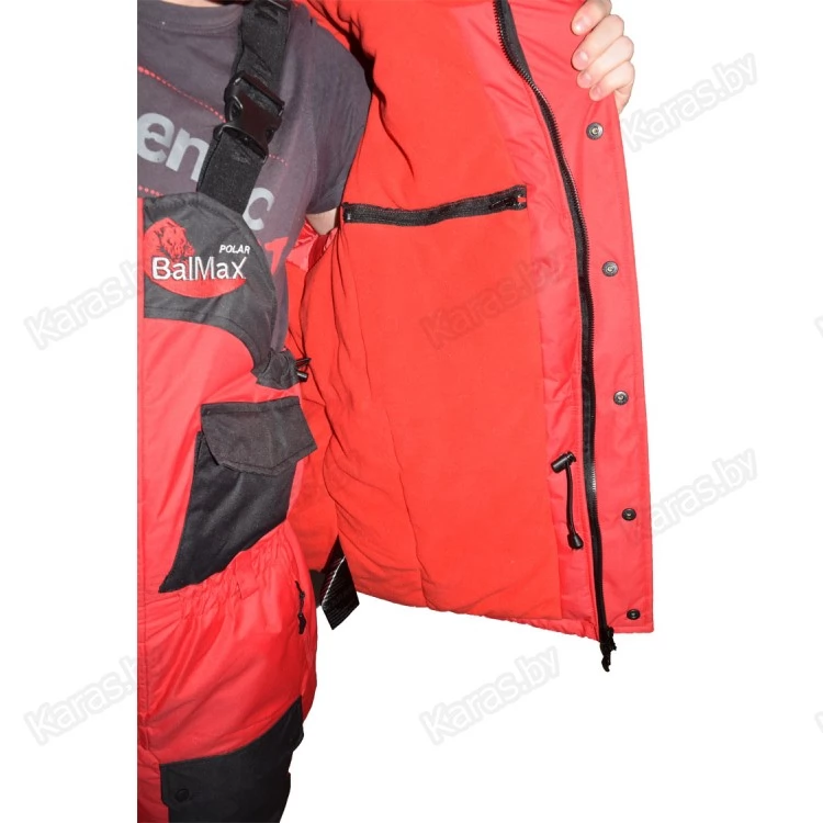 Balmax Polar -33°C легкий высокофункционалый костюм с большим количеством карманов. Выполнен из непродуваемой, водонепроницаемой и дыщащей мембранной ткани "Кошачий глаз" (Влагостойкость 6000 мм, Дышащая способность 6000 г/м2/24 час). Подкладка куртки выполнена из флиса, полукомбенезона - политаффета. Утеплителем служит Whitefaiber HiTech Komby plus плотностью 200 г/м2. Фурнитура польского производства. Костюм упаковывается в удобную сумку.