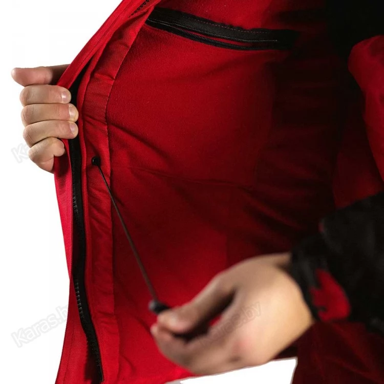 Куртка застегивается на двухзамковую тракторную молнию, которая прячется под клапаном на липучках. Мембранный материал защитит от дождя, снега и ветра и в то же время отведет от тела лишнюю влагу. Подкладка куртки, воротника и капюшона выполнена из флиса. Два косых нагрудных кармана утепленных флисом не дадут вашим рукам замерзнуть. В два нижних кармана с клапаном легко укладываются рукавицы. Один внутренних кармана на молнии. Регулируемый по объему капюшон имеет козырек, предохраняющий лицо от снега и дождя. Вшитые в рукава манжеты помогут сохранить тепло, а так же дополнительно можно стянуть низ рукава шлейкой на липучке.