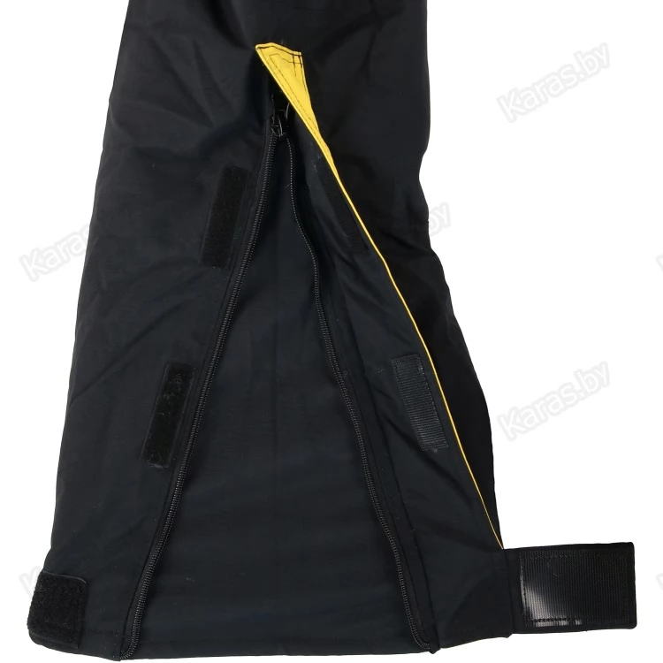 Ширина низа полукомбинезона может быть легко отрегулирована с помощью пат с велкро, что позволяет рыболовам надевать сапоги или другие виды обуви под комбинезон без необходимости снимать весь костюм.