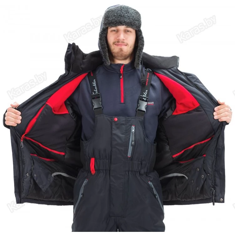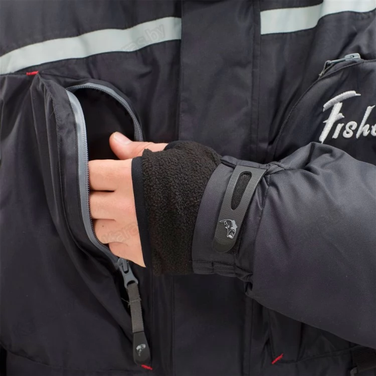Большие нагрудные карманы вместят коробки с приманками, высокий воротник и анатомический капюшон защитят в любой ветер, а мембранная ткань и высокотехнологичный утеплитель защитят от осадков и согреют от холода !