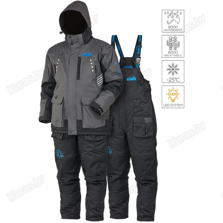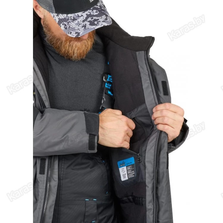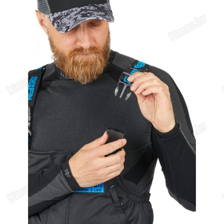 Встроенная система LED SYSTEM (батарея в комплект не входит) состоит их 8 светодиодных лампочек, встроенных в верхней части куртки. LED система освещает руки и пространство, предназначена для более комфортной ловли в темное время суток. А также светодиодное освещение обеспечивает дополнительную безопасность при передвижении в темноте.