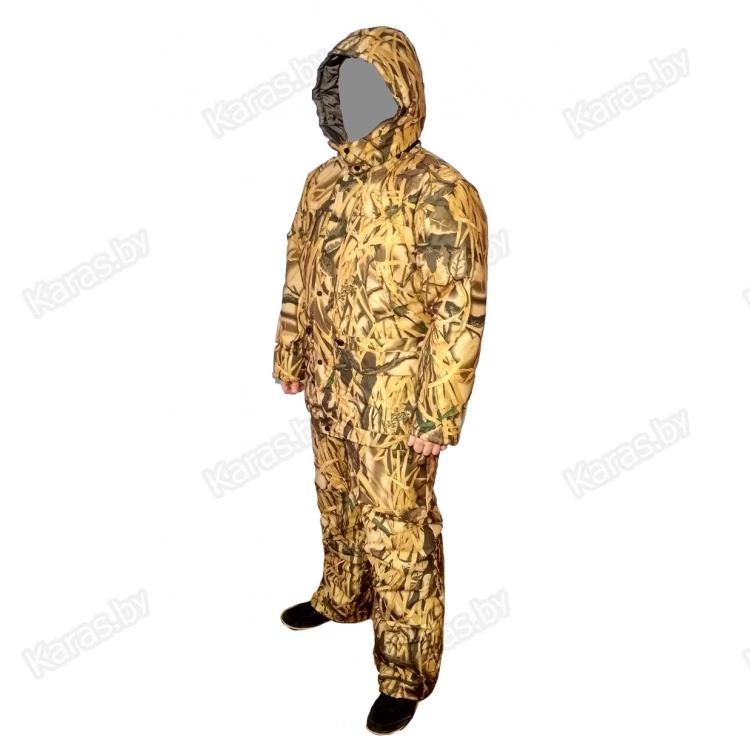 Костюм выполнен из непродуваемого и водонепроницаемого мембранного материала на основе микрофибры (Влагостойкость 8000 мм, Дышащая способность 3000 г/м2/24 час). Материал костюма не "дубеет" на морозе и практически не шуршит. Утеплителем служит уникальный материал Isosoft (изософт) плотностью 2*150 г/м2 и флис. В пошиве костюма используется качественная фурнитура польского производства.