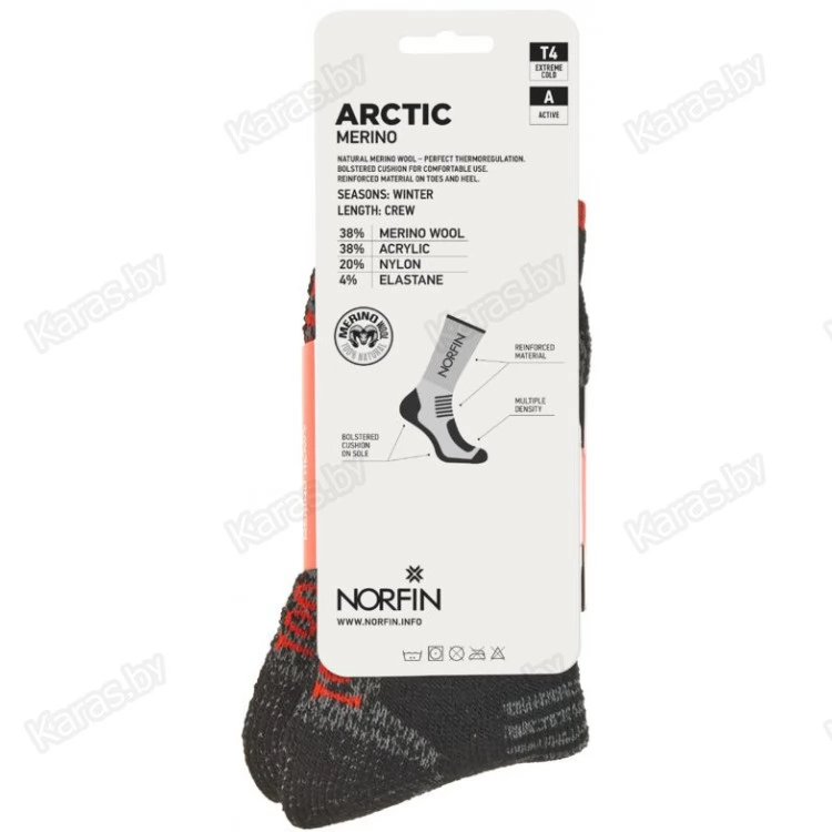 Носки для ежедневного использования в экстремально холодную погоду при высокой активности. Материал – комбинация шерсти с акрилом, обеспечивает тепло ногам. Носки мягкие и износостойкие. Укрепленные носок и пятка. Ступня имеет специальную вязку для поддержания стопы при ходьбе. Свод стопы имеет эластичную поддержку.