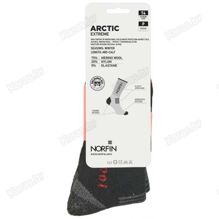 Носки для ежедневного использования в экстремально холодную погоду. Материал – высокое содержание шерсти Мериноса обеспечивает тепло ногам. Носки мягкие и износостойкие. Укрепленные носок и пятка. Ступня имеет специальную вязку для поддержания стопы при ходьбе. Свод стопы имеет эластичную поддержку.