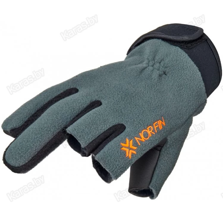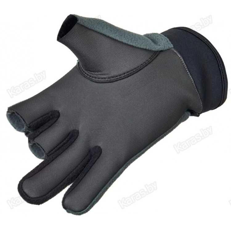 Ветрозащитные перчатки из полиэстера с PU мембраной и неопрена. У перчаток обрезаны большой, указательный и средний пальцы для прямого контакта со снастью. Рыболовные перчатки с тремя открытыми пальцами разработаны для удобства ловли рыбы спиннингом. Перчатки не только защищают кисти рук от механических воздействий с удилищем, но и согревают руки рыболова в ветреную теплую и прохладную погоду. Три открытых пальца свободны для работы, остальные остаются в тепле. Дополнительное крепление на запястье – текстильные застежки («липучки»).