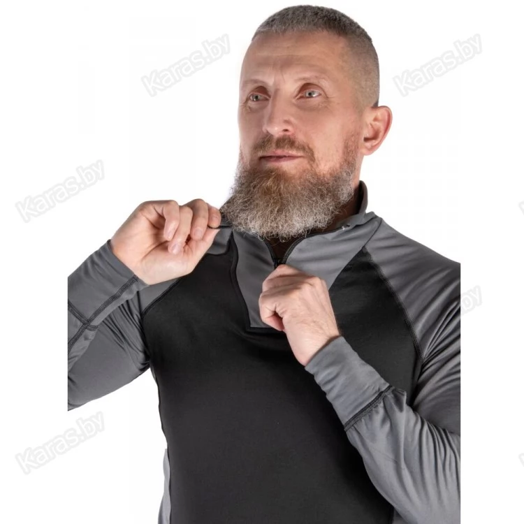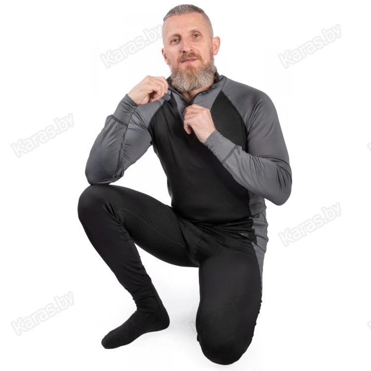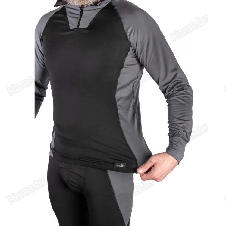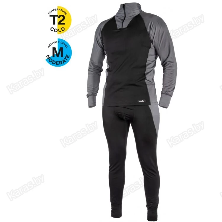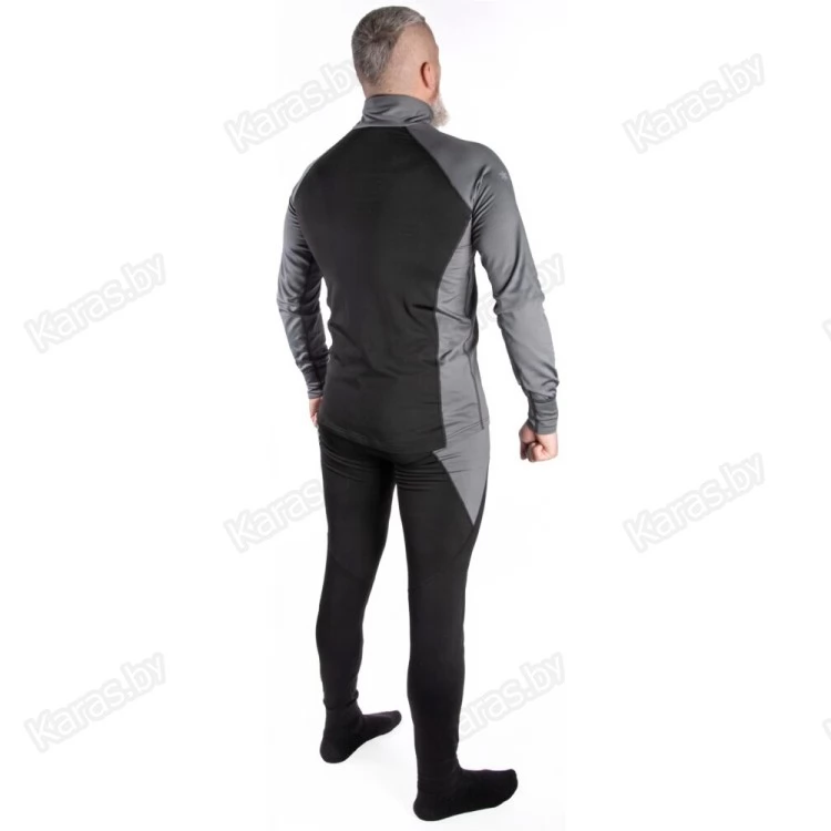 Высококачественный эластичный полиэстер, из которого изготовлен комплект, имеет с внутренней стороны влагоотводящий и теплосберегающий микроворс. Высокий воротник защитит от ветра, анатомичный крой и стрейчевая ткань обеспечивают плотное прилегание белья к телу, не сковывая движения.