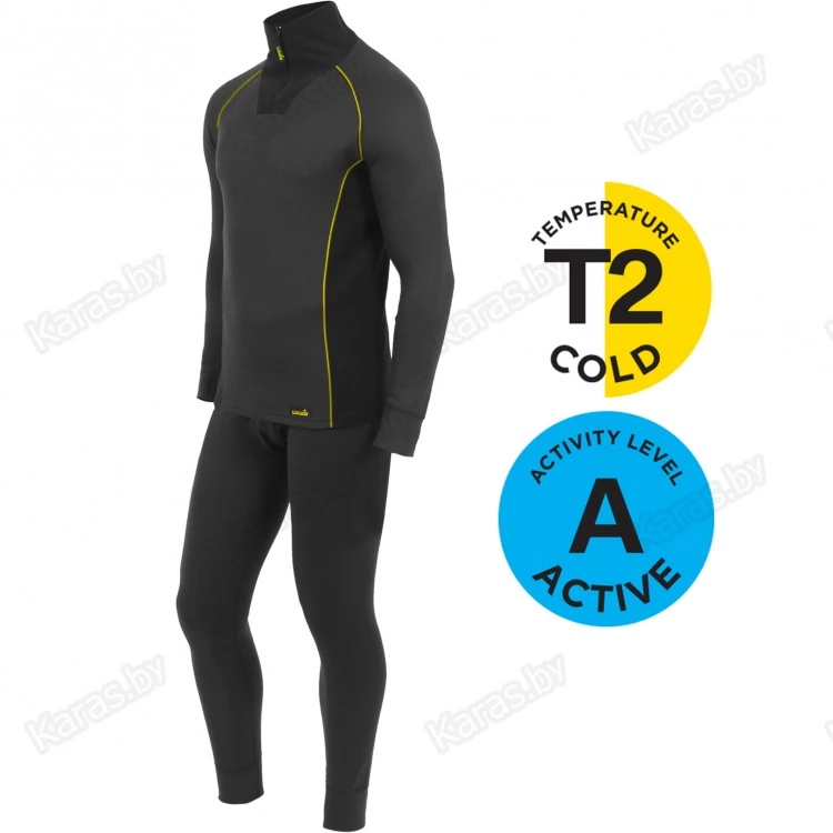 Высококачественный полиэстер, из которого изготовлен комплект, дополнен с внутренней стороны влагоотводящим и теплосберегающим микроворсом. Благодаря его ячеистой текстуре влага быстро выводится в верхний слой и изделие высыхает за очень короткое время. Высокий воротник оснащен молнией для защиты от ветра и выполнен из двустороннего микрофлиса. Комплект также имеет вставки из микрофлиса, плотностью 220 г/м2.