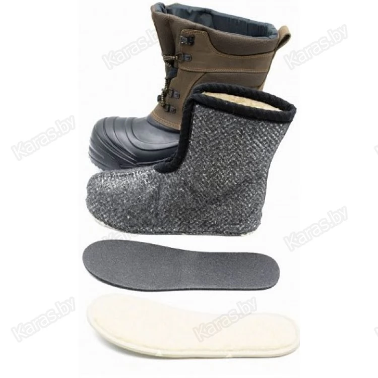 Как и вся обувь данной фирмы, нижняя часть сапог Demar Yetti Pro 2 выполнена в виде водонепроницаемой калоши, внутри которой расположена стелька из овечьей шерсти. А верхняя - изготовлена из водонепроницаемой ткани и кожи (нубука). Натуральная овчина является основным материалом внутренней части обуви, которую дополняет специальный термоизоляционный материал – EVA. Благодаря этим особенностям сапоги имеют легкий вес.