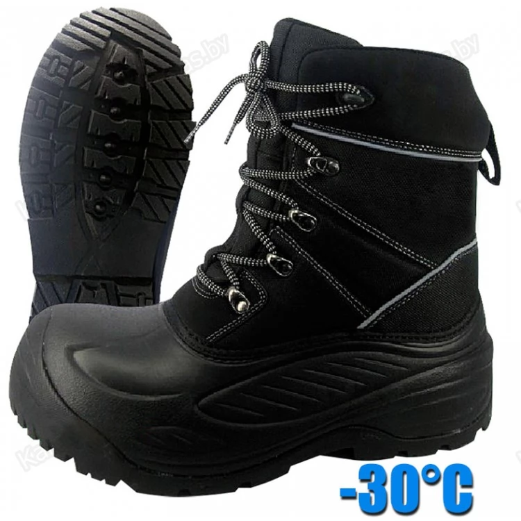 Тёплые зимние ботинки, разработанные специально для любителей зимней рыбалки и активного отдыха. Ботинки обеспечивают термозащиту в динамике при температуре до -30°C. Вынимаемый вкладыш ботинок имеет конструкцию из нескольких слоев: искусственный войлок (полиэстер) - основной термоизолирующий материал разделен перфорированной фольгой. Дополнительная внешняя термоизоляция ног, обеспечивается высококачеснвенным утеплителем Thinsulate 400G Altra и пеной Nylex. Галоша из материала EVA с резиновой подошвой, имеющейся высокий протектор, обеспечивает безопасное сцепление при хождении по льду и скользкой снежной поверхности. Для повышения прочности ботинок на носке и пятке используется специальная резина. Зимние сапоги NORFIN Discovery продаются в Минске на сайте karas.by ©