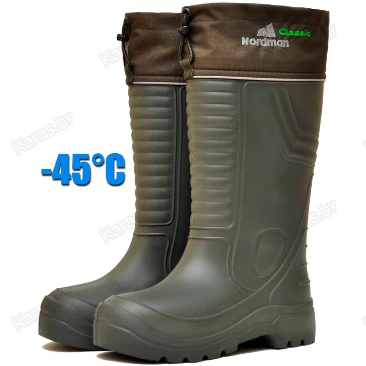 NordMan Classic – Сапоги «NordMan» разработаны специально для охотников и рыбаков с учетом их пожеланий и рекомендаций. Данная модель имеет более высокий подъем и широкое голенище, а также более плотный многослойный утепляющий вкладыш, который обеспечивает надежную термоизоляцию.