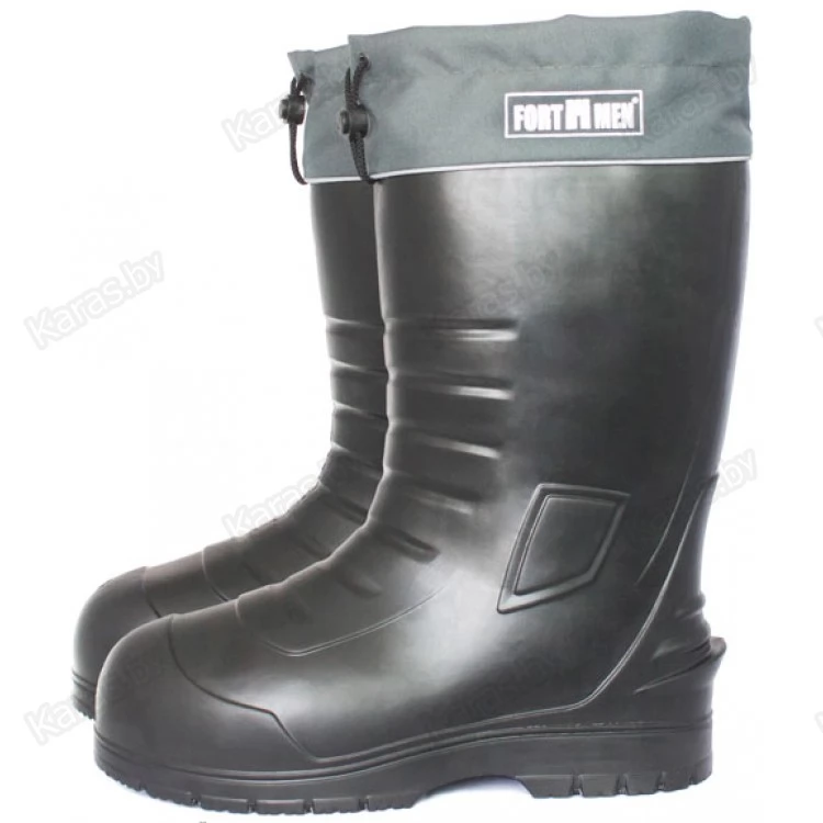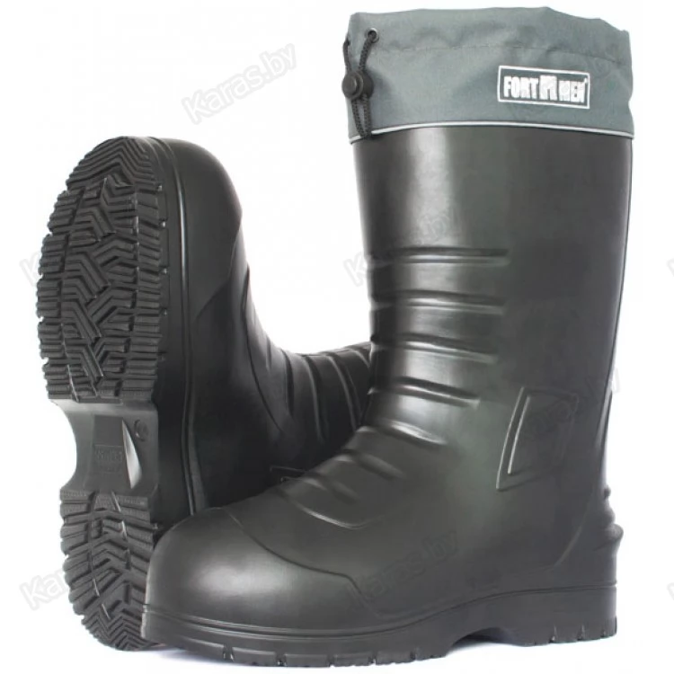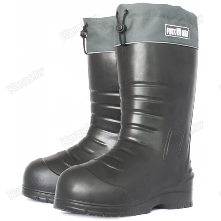 Оптимальная высота голенища. Высота цельнолитого голенища сапог FORTMEN ЕНИСЕЙ от 33 до 34 см. Это расстояние до максимальной полноты икр ног большинства людей среднего роста. Многослойный вкладной утеплитель имеет такую же высоту. Обхват голенища по верхнему краю составляет чуть менее 50 см. Такая высота и полнота голенища подойдет людям с широкими икрами ног и в сочетании с манжетой не позволит образовываться "натертостям" от голенища.
